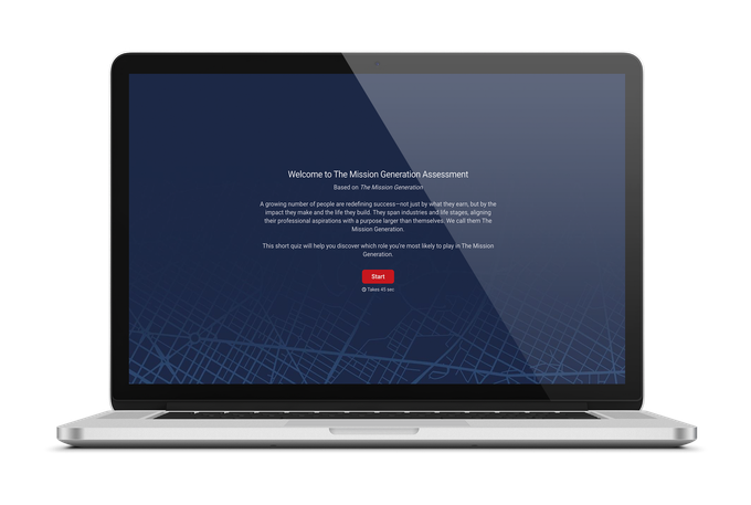 This quiz will help you discover which role you’re most likely to play in the Mission Generation. Your results will show you the first step of a roadmap toward building career stability, pursuing your mission, and reclaiming a sense of purpose.